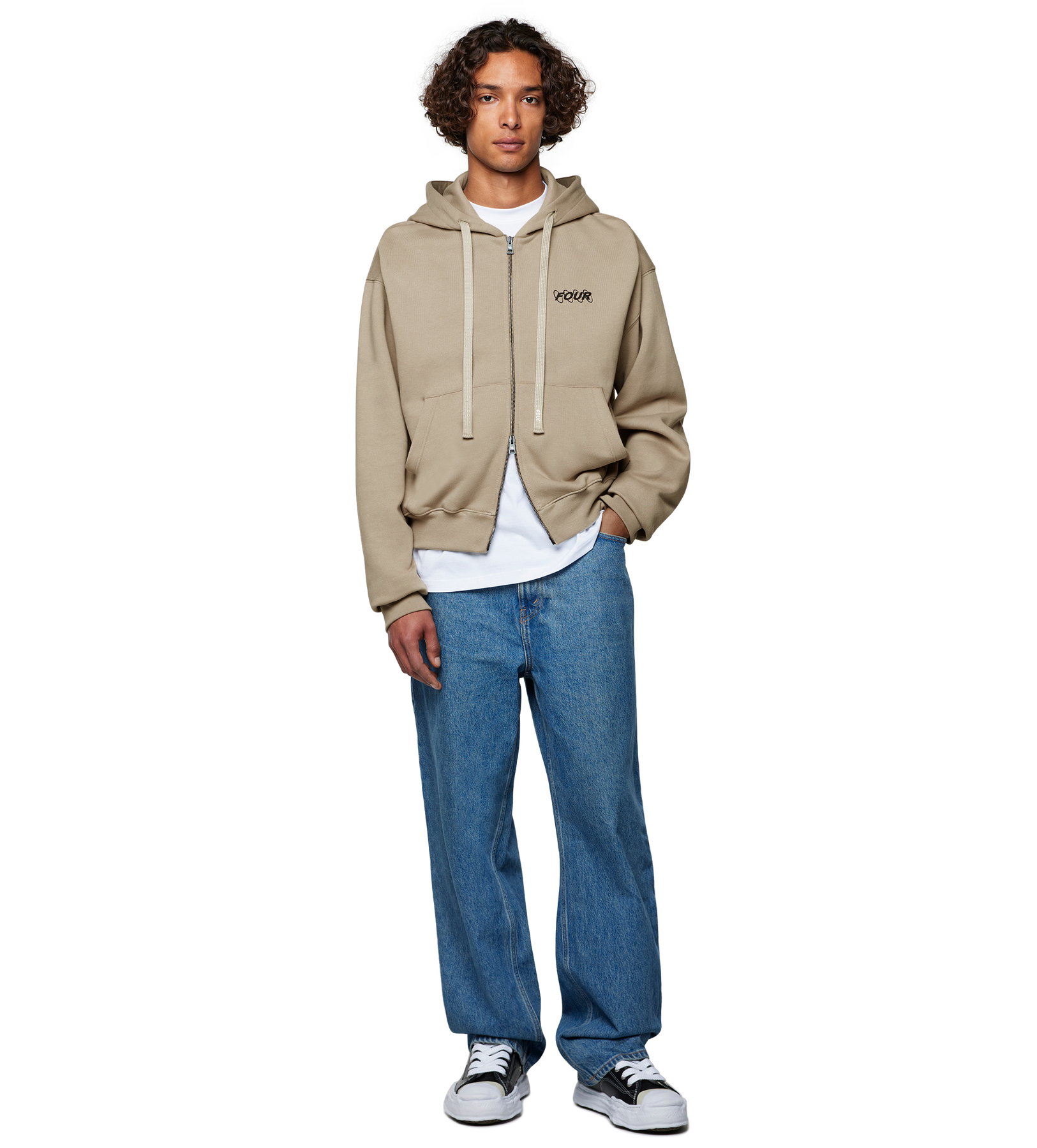 FOUR Circles Boxy Zip‑Up Hoodie – Vintage Khaki Cotton Fleece